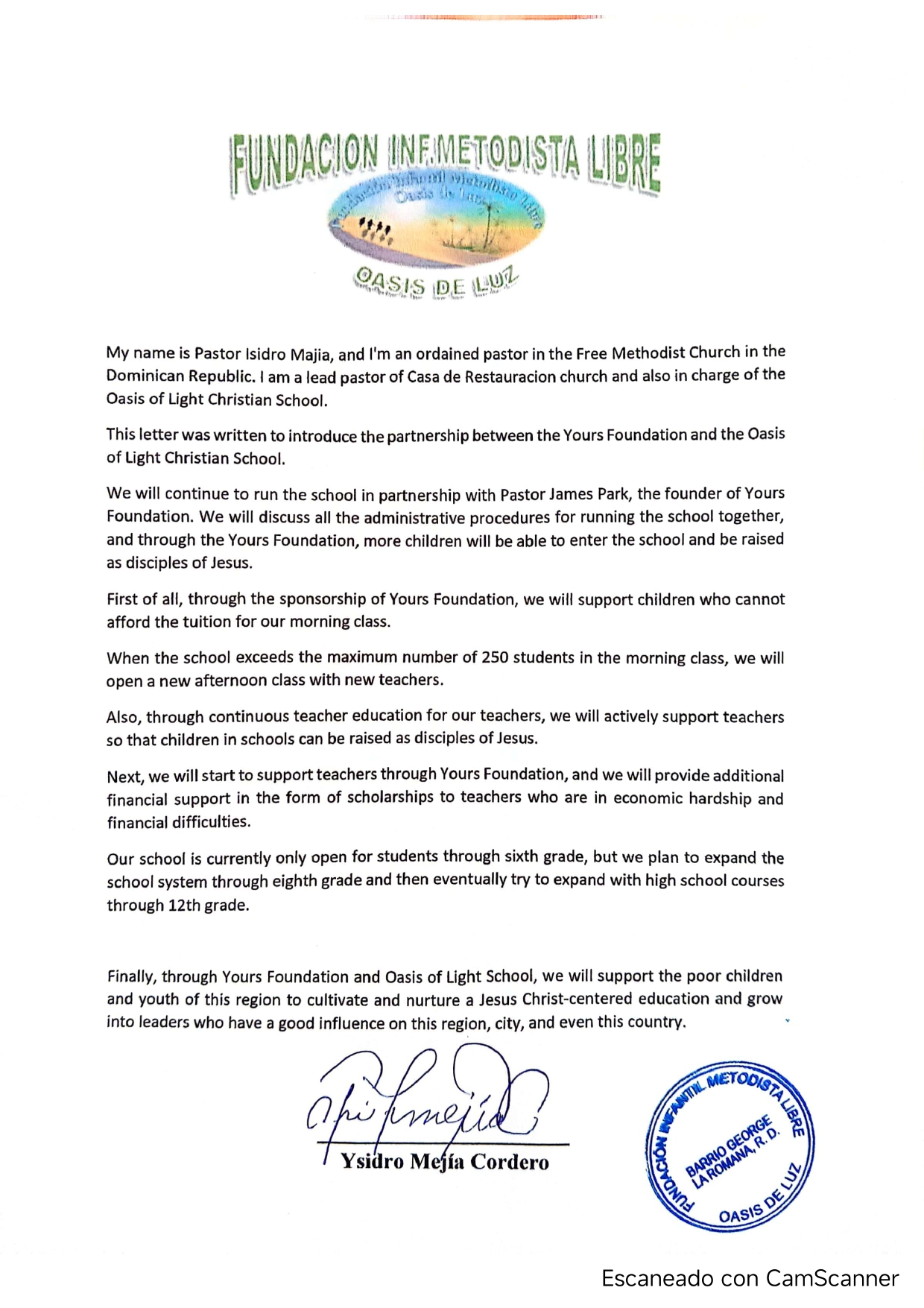 안녕하세요, 저는 이스드로 마히아(Isidro Majia) 목사이며, 도미니카 공화국 자유 감리교회의 안수받은 목사입니다. 저는 Casa de Restauracion 교회의 담임 목사이자 **빛의 오아시스 기독교 학교(Oasis of Light Christian School)**를 담당하고 있습니다.