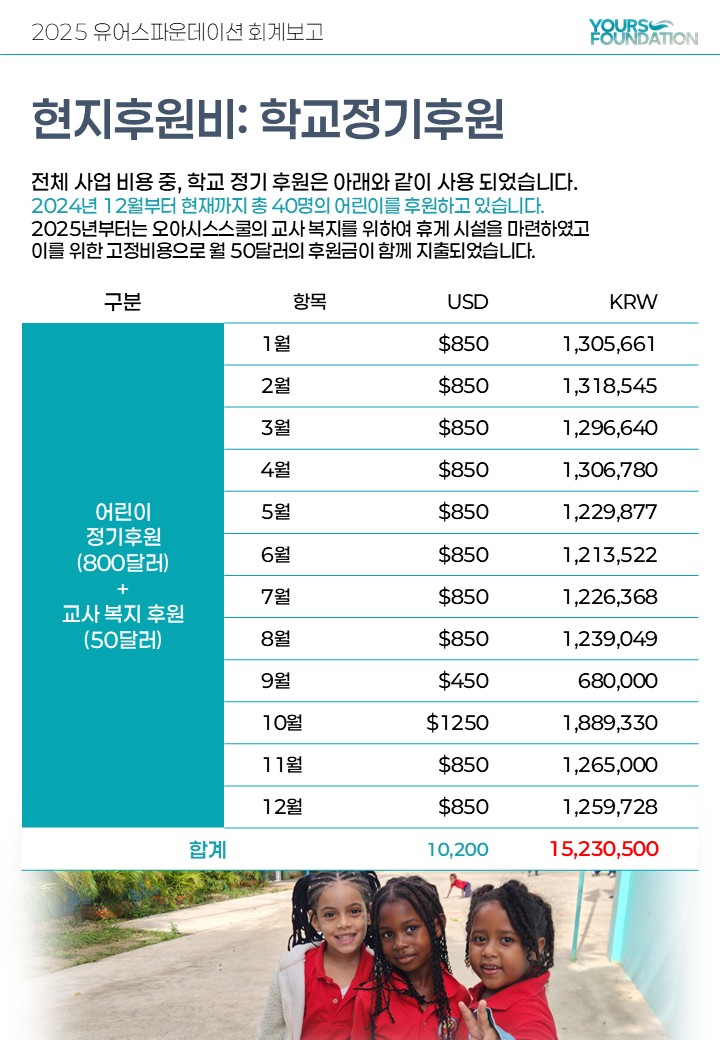 2025년 후원을 통한 수입내역과 이를 통한 사업 지출 내역을 보고 및 안내 드립니다.